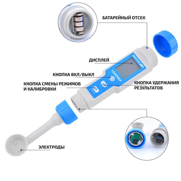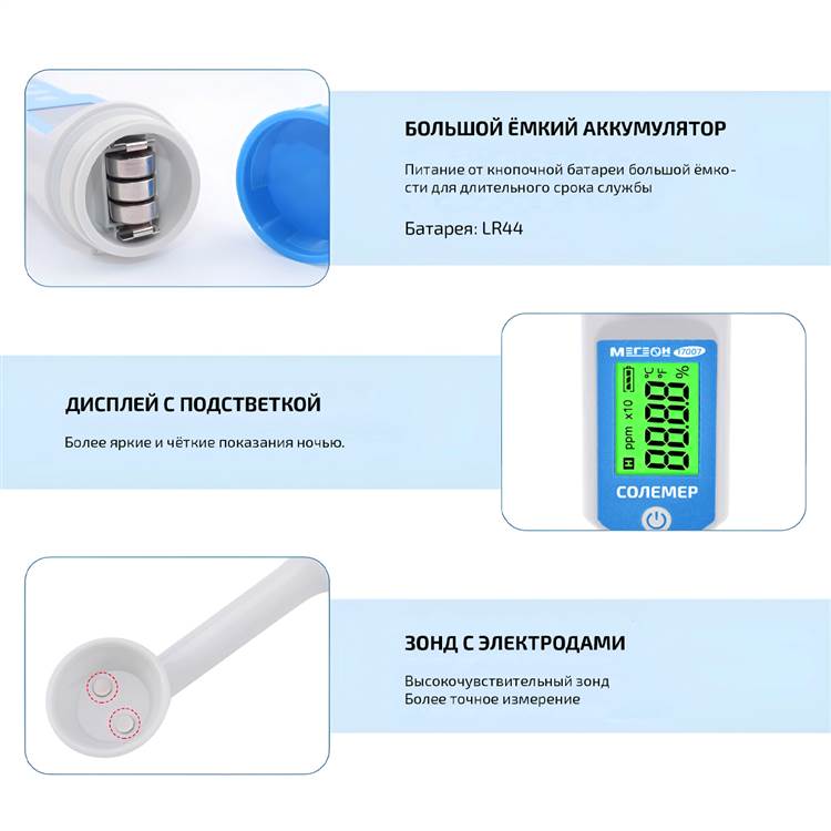 МЕГЕОН 17007 – это портативный солемер (измеритель солёности) и температуры растворов. Используемый для измерения концентрации соли в % и температуры жидкости (°С/°F), отличается высокой чувствительностью и контрастным дисплеем.
