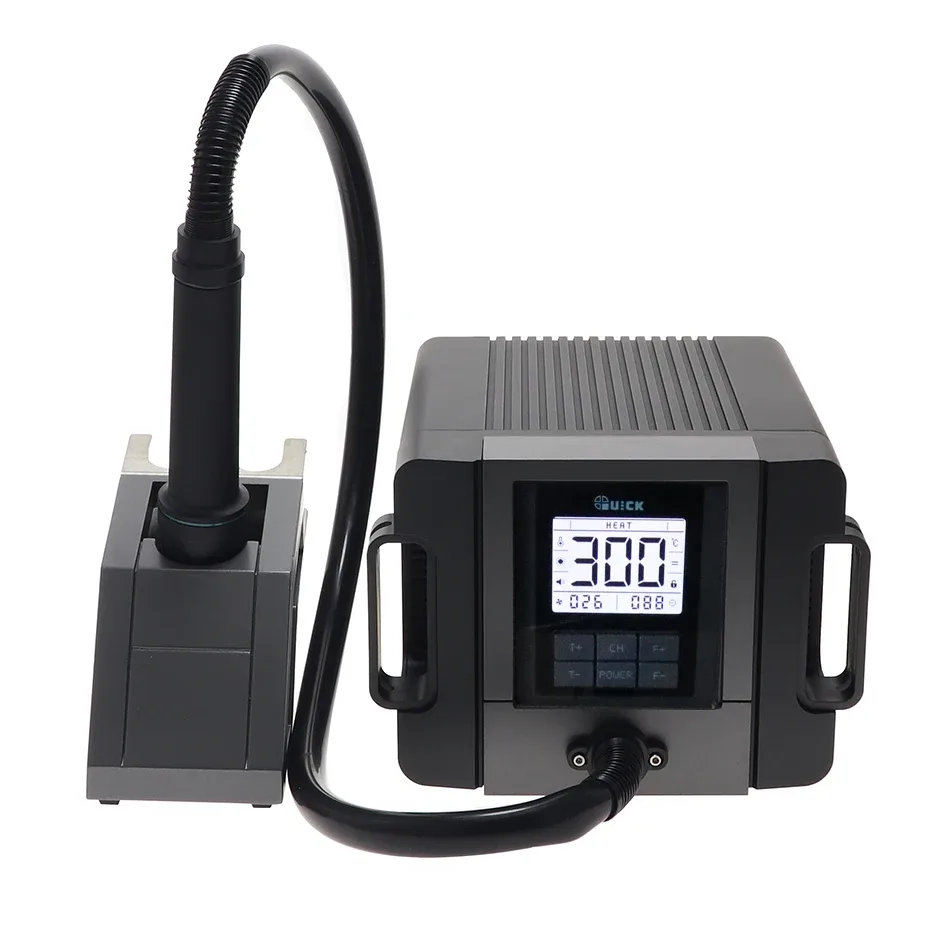 Quick TR-1300A оборудована бесщеточным двухступенчатым нагнетателем, который обеспечивает стабильную подачу воздуха. Такая система отличается надежностью и рассчитана на длительный срок службы, позволяя поддерживать оптимальный воздушный поток для равномерного прогрева компонентов. Благодаря регулируемым параметрам, можно настроить уровень потока воздуха в зависимости от специфики задачи и используемых материалов, что делает процесс пайки более точным и предсказуемым.