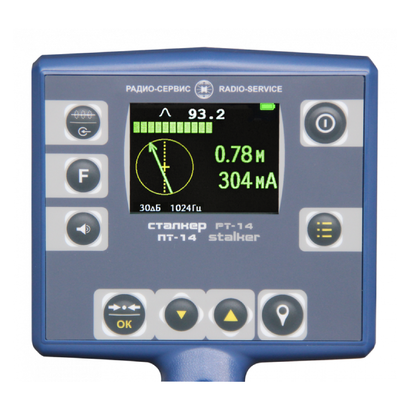 Главный элемент системы — приёмник ПТ-14, работающий в широком частотном диапазоне. Он поддерживает активные частоты 273, 526, 1024, 8928 и 32768 Гц, а также пассивные режимы «POWER» и «РАДИО/Эфир», охватывающие частоты от 48 Гц до 36 кГц. Это позволяет выполнять трассировку как с использованием генератора, так и без него. Прибор определяет глубину залегания с погрешностью не более 5 %, сохраняя стабильность показаний даже при значительных внешних наводках. Благодаря встроенному Li-ion аккумулятору, обеспечивается непрерывная работа до 14 часов, что особенно важно при проведении обследований на протяжённых объектах.