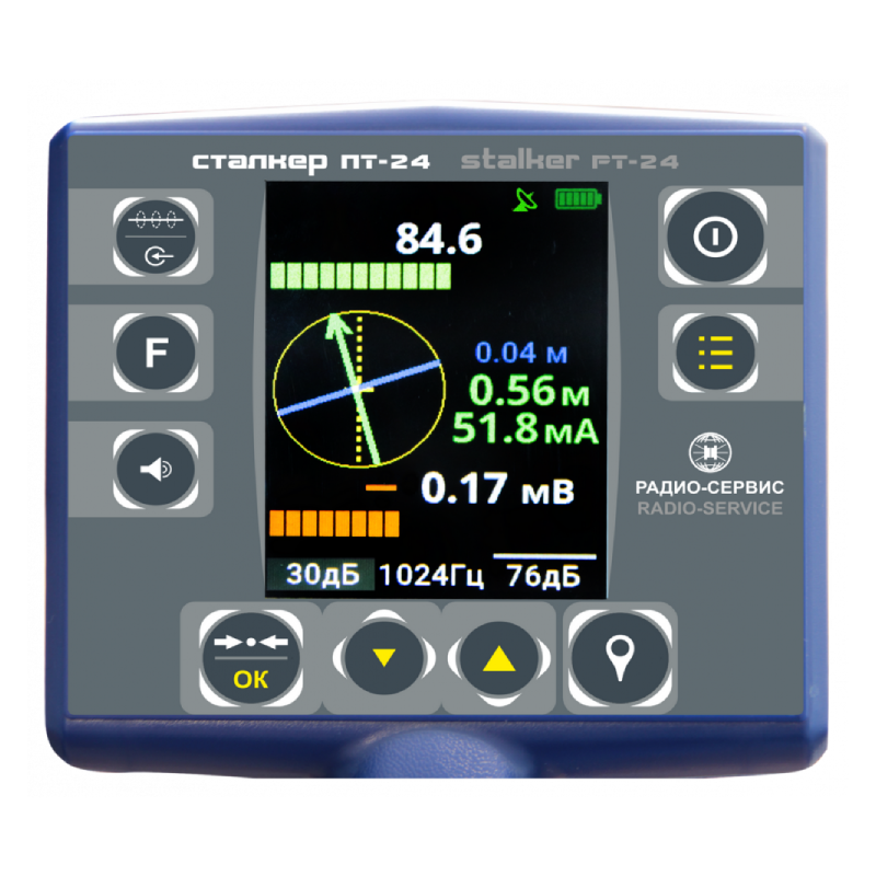 В основе комплекса используется приёмник ПТ-24, который работает на активных частотах 273, 526, 1024, 8928 и 32768 Гц, а также поддерживает пассивные диапазоны POWER (50 Гц), «РАДИО» и «Эфир». Для повышения совместимости с оборудованием других производителей предусмотрены дополнительные частоты — 491, 512, 982, 2000, 2048, 8440, 9828 и 10000 Гц. Широкий спектр рабочих диапазонов — от 48 Гц до 10 кГц в режиме «Эфир» и 10–36 кГц в режиме «РАДИО» — обеспечивает стабильное обнаружение сигнала даже при сложных внешних условиях. Погрешность определения глубины трассы не превышает 5 %, что гарантирует надёжность результатов при обследовании как силовых линий, так и слаботочных коммуникаций.