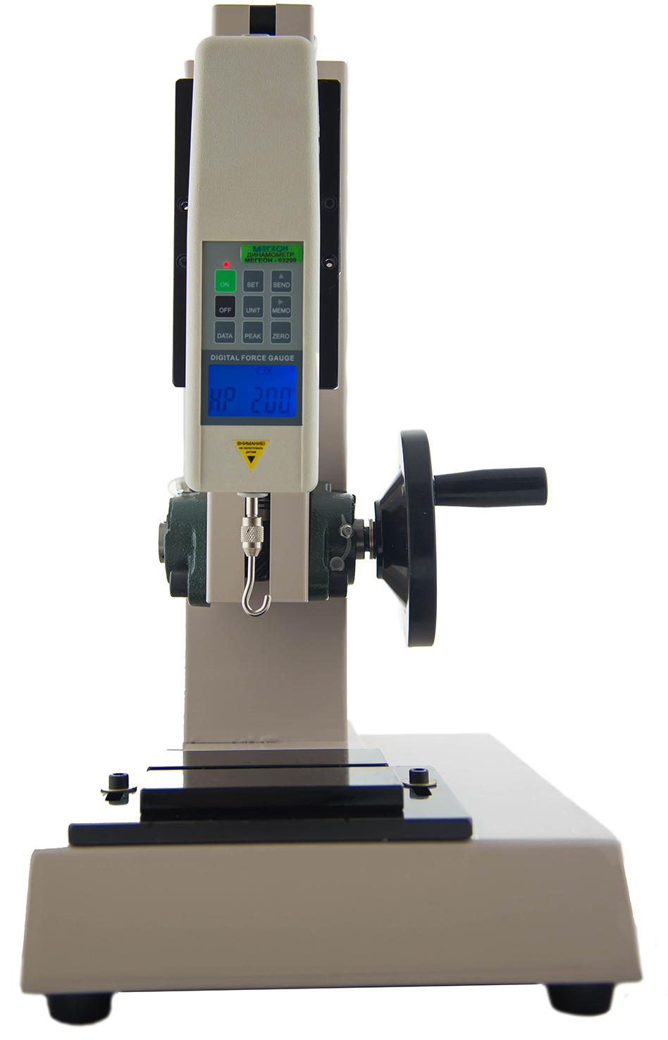 Динамометрический стенд с управлением, которое осуществляется за счет шарико-винтовой пары (ШВП) и линейно направленного привода с прочной закрытой конструкцией. Стенд может работать как с аналоговыми динамометрами МЕГЕОН 04ХХХ, так и с цифровым оборудованием серии МЕГЕОН 03ХХХ и 53ХХХ.